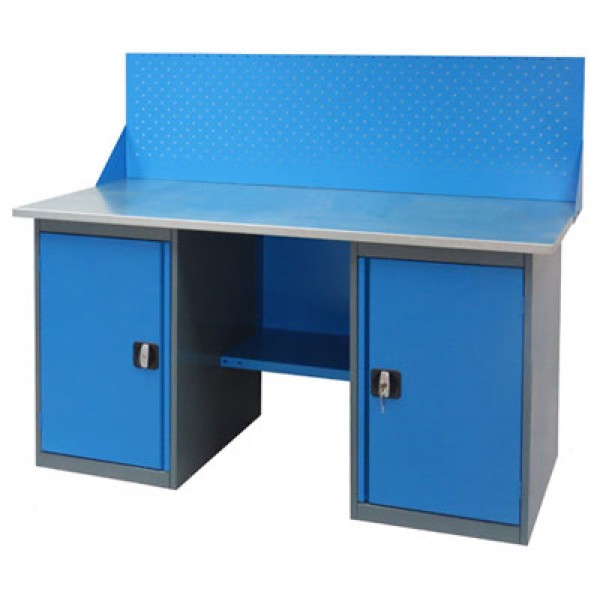 • Верстак укомплектован двумя тумбами с полками.