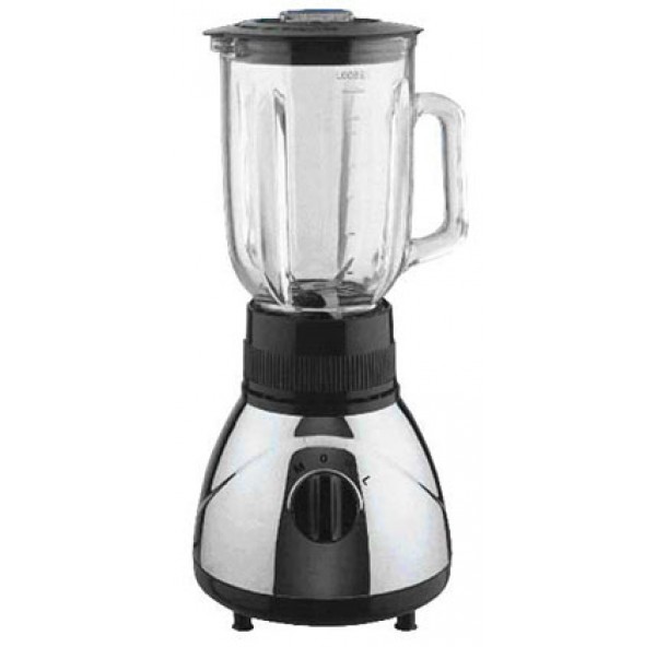 Блендер, 2 скорости + режим пульсации, 1 стеклянный стакан емкостью 1.3 л с ножом, крышкой и мерным колпачком, режим работы повторно-кратковременный (длительность непрерывной работы не более 5 мин), может быть использован для измельчения льда, материал корпуса - пластмасса