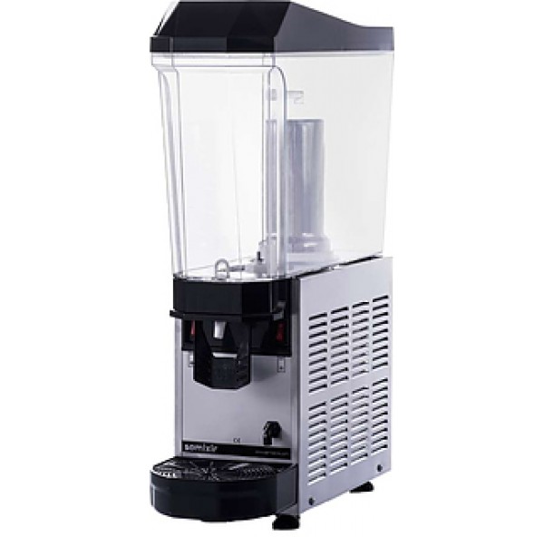 Сокоохладитель Samixir 1S используется в ресторанах, кафе, барах, супер- и гипер-маркетах, магазинах, на предприятиях уличной торговли и в развлекательных центрах для охлаждения и розлива различных сокосодержащих напитков. Модель оснащена механическим термостатом, магнитными форсунками и системой смешивания, емкостью из ударопрочного поликарбоната и двухслойной крышкой. Сокоохладитель работает на хладагенте R134a.