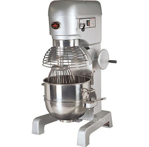 Месильный орган вращается вокруг своей оси и оси дежи, тем самым обеспечивая получение однородной массы. Миксер оснащен съемной дежей с крышкой и предохранительным микровыключателем. Корпус окрашен, а все рабочие органы изготовлены из нержавеющей стали.