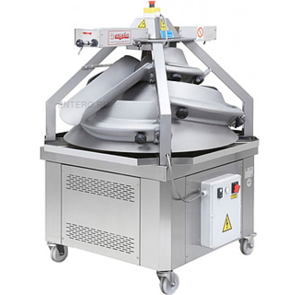Конусный тестоокруглитель Sottoriva ASR используется на предприятиях промышленного производства, общественного питания и торговли для округления заготовок из мягкого и нестандартного теста перед их выпечкой. Подлежащая округлению тестовая заготовка вращается вокруг собственной оси с помощью вращающегося конуса по углубленным каналам. Модель оснащена 2 подсыпателями муки, регулирующими желобами, съемными поверхностями для сбора крошек и вращающимися колесами. Корпус выполнен из нержавеющей стали, конус и каналы с покрытием - из тефлона.