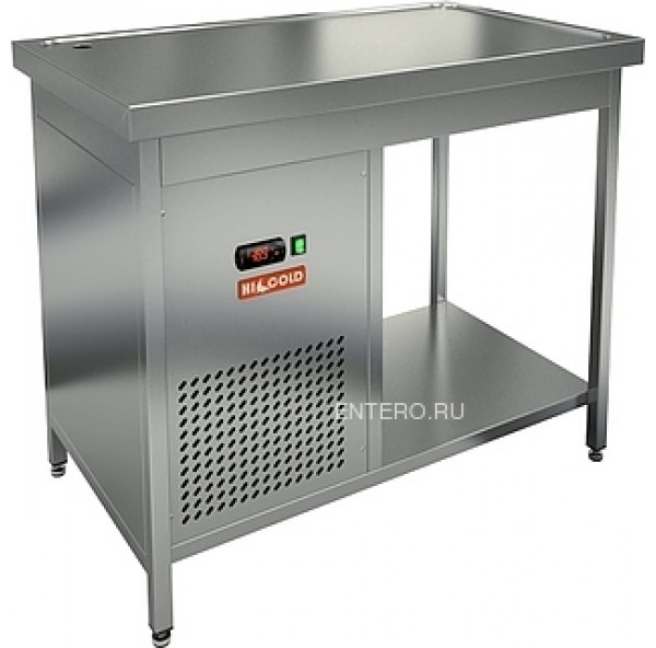 Холодильный стол HICOLD SO-10/7 состоит из рабочей поверхности, на которой можно раскатывать тесто и обрабатывать ингредиенты для приготовления блюд, и полки для хранения посуды или продуктов. Оборудование подходит для использования на предприятиях общественного питания.