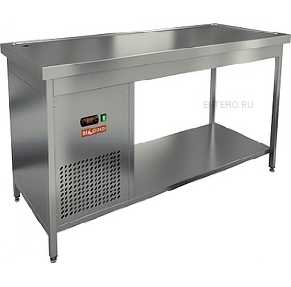 Холодильный стол HICOLD SO-15/7 состоит из рабочей поверхности, на которой можно раскатывать тесто и обрабатывать ингредиенты для приготовления блюд, и полки для хранения посуды или продуктов. Оборудование подходит для использования на предприятиях общественного питания.