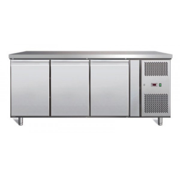 Холодильные столы COOLEQ изготовлены из нержавеющей стали с искусственным охлаждением внутреннего объема (встроенный холодильный шкаф). Столешница его обычно выполняется из нержавеющей стали, гранита или мрамора и служит рабочей поверхностью для повара.