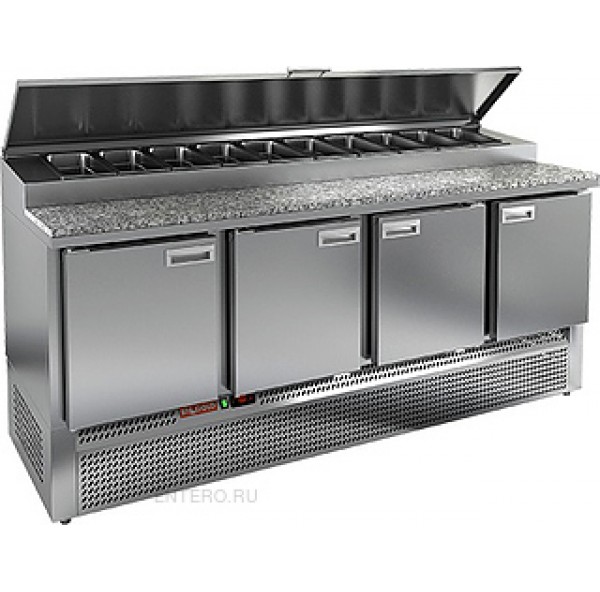 Охлаждаемый стол для пиццы PZE1-1111/GN (1/3H) выполнен из нержавеющей стали . Верх стола накрыт каменной столешницей. В верхней части стола устанавливаются гастроемкости , максимальной глубиной 150 мм.