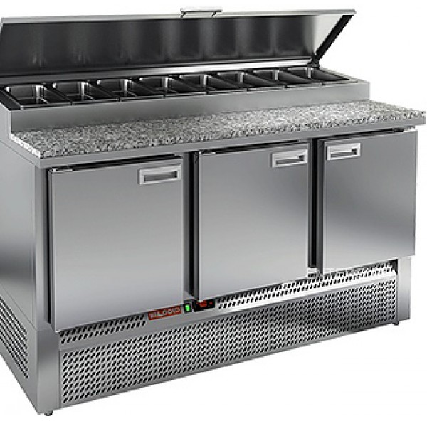 Охлаждаемый стол для пиццы HICOLD PZE1-111/GN (1/3H) выполнен из нержавеющей стали . Верх стола накрыт каменной столешницей. В верхней части стола устанавливаются гастроемкости , максимальной глубиной 150 мм.