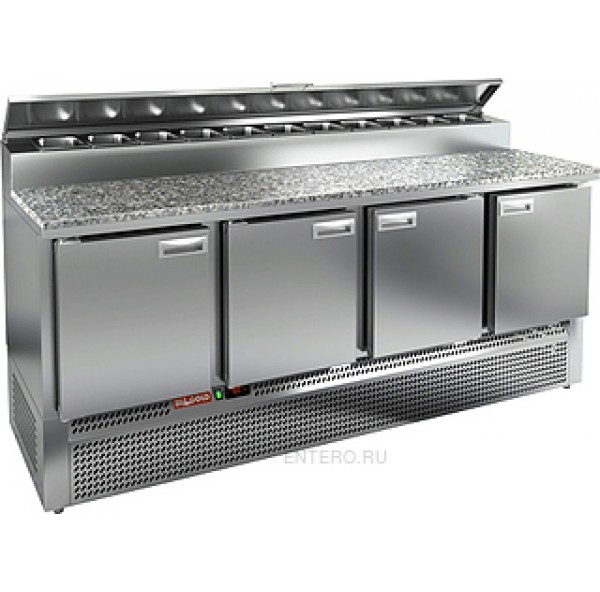 Охлаждаемый стол для пиццы PZE2-1111/GN (1/6H) выполнен из нержавеющей стали . Верх стола накрыт каменной столешницей.