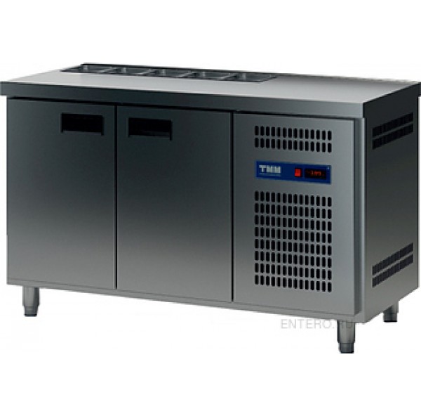 Стол для салатов ТММ СХСБ-С-1/2Д предназначен для обработки ингредиентов, используемых для приготовления салатов, охлаждения и кратковременного хранения скоропортящихся продуктов и напитков на предприятиях общественного питания и торговли. Цельнозаливной корпус и фасад выполнены из нержавеющей стали AISI 340, задняя стенка - из оцинкованной стали.