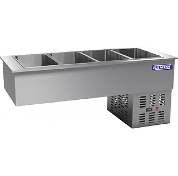 Салат-бар КАМИК СОН-146366 используется на предприятиях общественного питания и торговли для охлаждения, демонстрации и кратковременного хранения ингредиентов для приготовления салатов и готовых блюд. Модель оснащена 3 делителями. В правой части конструкции расположен холодильный агрегат. Корпус выполнен из нержавеющей стали AISI 430 толщиной 1 мм.