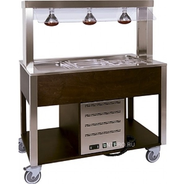 Шведский стол Metalcarrelli 6910.3L-R предназначен для демонстрации и кратковременного хранения продуктов и готовых блюд при температуре их подачи на предприятиях общественного питания, а также в розничных торговых точках.