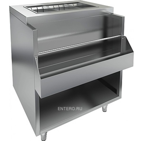 Барная станция HICOLD НБМВЛ-9/6К предназначена для комплектации барных стоек, оборудована ванной для льда и лотком с дополнительным карманом.