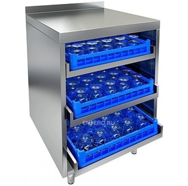 Стол открытый HICOLD НБМКБ-6/7Б предназначен для комплектации барных стоек, оборудован тремя полками для посудомоечных корзин. Столешница с бортом.