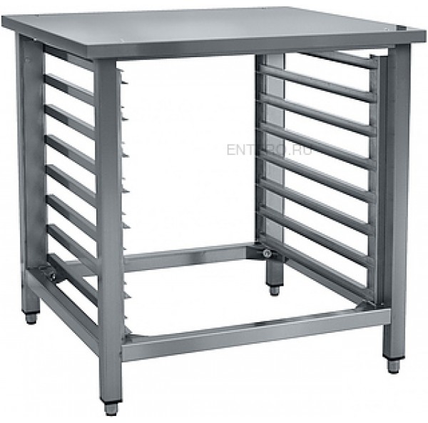 Подставка Abat ПК-8 предназначена для совместного использования с конвекционными печами, выполнена из нержавеющей стали и оснащена регулируемыми по высоте ножками с резиновыми вставками.