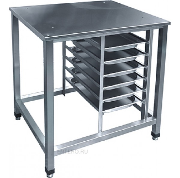 Подставка Hessen ПК 6 используется на предприятиях пищевой промышленности, общественного питания и торговли для установки на них пароконвектоматов. Подставка оснащена 6 направляющими для гастроемкостей GN 1/1. Изделие произведено с использованием программы Technology without Injuries - комплекса технологических решений, направленных на уменьшение травмоопасности для персонала, работающего на оборудовании. Каркас выполнен из нержавеющей стали, а для повышения прочности столешница укреплена ламинированным ДСП.
