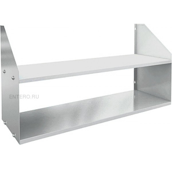 Полка настенная двойная HICOLD НПД-9/4 из нержавеющей стали AISI 430 используется для хранения непортящихся продуктов и полуфабрикатов, а также кухонной посуды: сковородок, тарелок, кружек и прочего на предприятиях общественного питания.