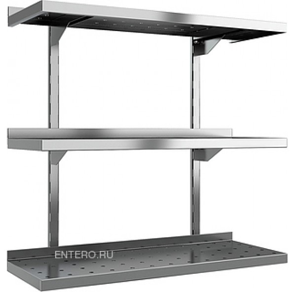 Полка настенная каскадная перфорированная HICOLD НПНК-13/4 П используется для хранения непортящихся продуктов и полуфабрикатов, а также кухонной посуды: сковородок, тарелок, кружек и прочего на предприятиях общественного питания. Конструкция выполнена из нержавеющей стали AISI 430.