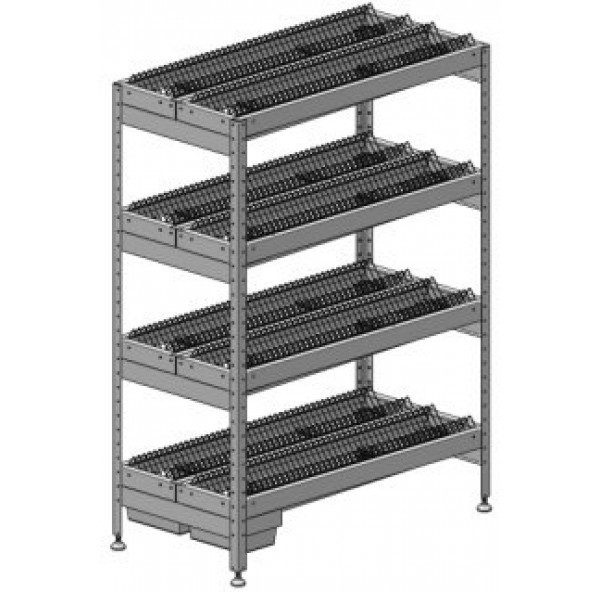 Стеллаж предназначен для размещения, хранения и сушки в естественных условиях стандартных суповых и десертных тарелок различных диаметров. В данном стеллаже 176 секций для тарелок.