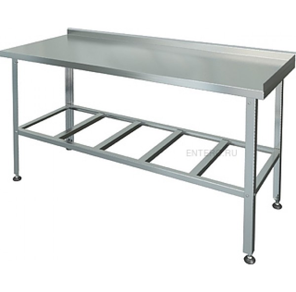 Производственный стол Марихолодмаш СРП-2п-0,6/1,5 предназначен для раскатки теста и обработки ингредиентов для приготовления блюд, а также может использоваться в качестве дополнительного места для установки кухонных приборов на предприятиях общественного питания и торговли. Рабочая поверхность, усиленная ЛДСП толщиной 16 мм, выполнена из нержавеющей стали AISI 430 толщиной 0,5 мм, ножки с регулируемыми опорами - из уголка 40х40 мм из оцинкованной стали толщиной 1 мм с подгибом краёв во внутрь.