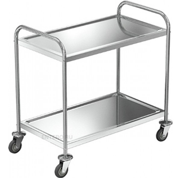 Сервировочная тележка Техно-ТТ ТПР-320/905 предназначена для доставки готовых блюд, сбора тарелок, чашек и стаканов со столов на предприятиях общественного питания и торговли. Модель оснащена 2 полками и 4 колесами, 2 из которых с тормозными устройствами. Разборный каркас выполнен из круглой трубы из нержавеющей стали AISI 201, полки - из нержавеющей стали AISI 430.