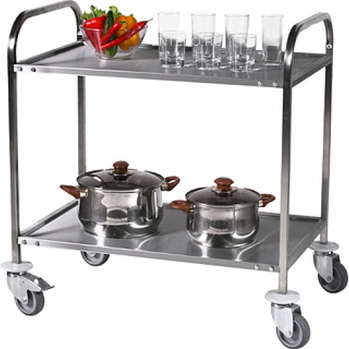 Сервировочная тележка ТММ ТС-2/800/500 предназначена для перемещения столовых приборов, тарелок с готовыми блюдами, грязной посуды и т.д. на предприятиях общественного питания и торговли. Оборудование оснащено 2 полками. Модель полностью выполнена из нержавеющей стали.