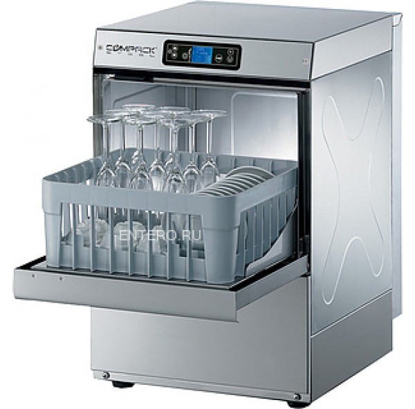 Стаканомоечная машина Compack X25E серии EXUS используется на предприятиях общественного питания и торговли для мойки стаканов, чашек, тарелок и столовых приборов. Модель оснащена электронной панелью управления и подключением к горячей и холодной воде. Корпус выполнен из нержавеющей стали AISI 304.