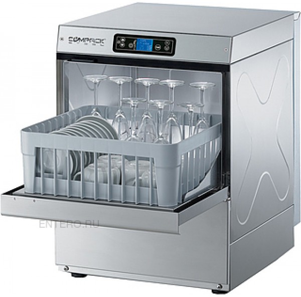 Стаканомоечная машина Compack X28E серии EXUS используется на предприятиях общественного питания и торговли для мойки стаканов, чашек, тарелок и столовых приборов. Модель оснащена электронной панелью управления и подключением к горячей и холодной воде. Корпус выполнен из нержавеющей стали AISI 304.