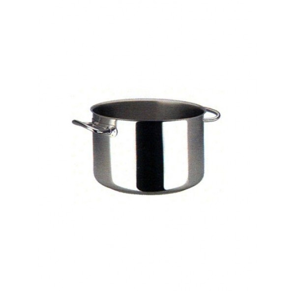 Кастрюля средняя, диаметр 28 см, высота 17,5 см, объем 10,3 л, поверхность снаружи глянцевая, внутри матовая, дно сэндвич, 2 ручки, полностью нерж.сталь 18/10 (без крышки)
