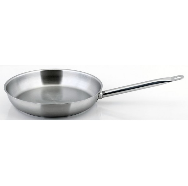 Сковорода, диаметр 28 см, поверхность снаружи глянцевая, внутри матовая, дно сэндвич, округлая ручка, полностью нерж.сталь 18/10 (без крышки)