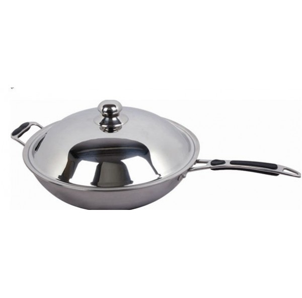 Сковорода-вок, диаметр 36 см, с ручкой и крышкой, нерж.сталь 430