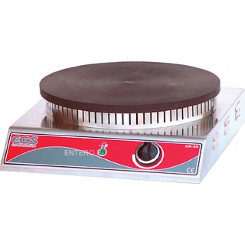 Модель EGS CR 35 предназначена для жарки блинов на предприятиях фаст-фуда, в киосках уличной торговли и т.д. Регулируемый термостат позволяет устанавливать выбранную температуру, а быстрый и равномерный нагрев поверхности способствует быстрому приготовлению блинов.
