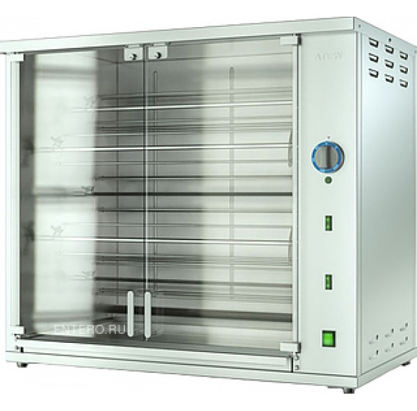 Гриль для кур ATESY Командор- 2/5 Э используется на предприятиях общественного питания и торговли. Модель оснащена электродвигателем, раздельными терморегуляторами для каждой группы ТЭНов, съемными шампурами, внутренней подсветкой камер и поддоном для сбора жира. Корпус и все внутренние элементы выполнены из пищевой нержавеющей стали, дверцы - из термостойкого ударопрочного стекла с добавлением горного хрусталя, ручки дверей - из термостойкого пластика, и ножки - из пластмассы.