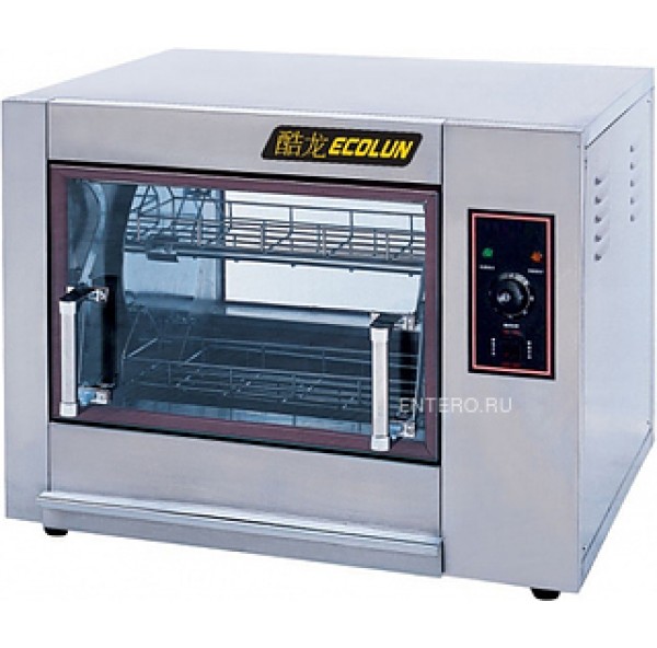 Карусельный гриль ECOLUN EN 266 предназначен для жарки тушек кур в корзине и равномерному запеканию на предприятиях общественного питания и торговли. Модель оснащена таймером. Задняя стенка и дверь выполнены из стекла.