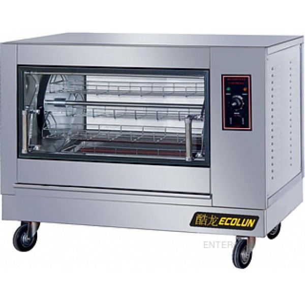 Карусельный гриль ECOLUN EN 268 предназначен для жарки тушек кур в корзине и равномерному запеканию на предприятиях общественного питания и торговли. Модель оснащена таймером. Задняя стенка и дверь выполнены из стекла.