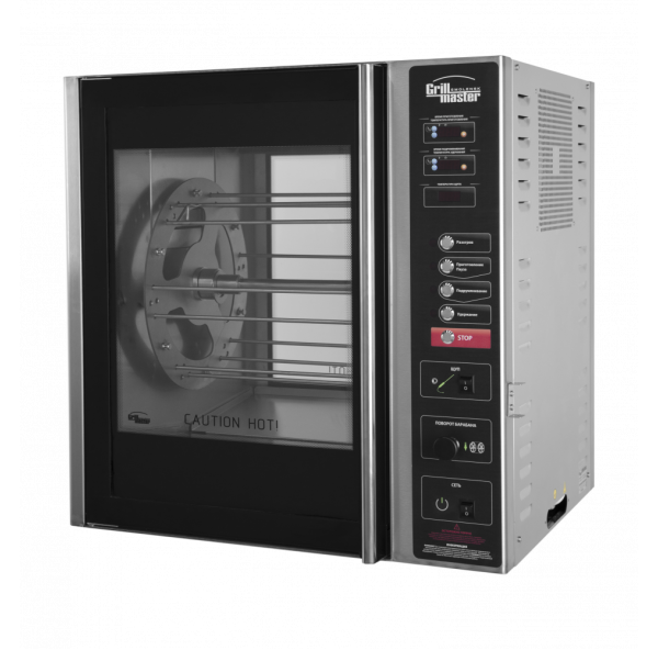 Конвекционный гриль Grill Master Ф3КЭЛ/1 предназначен для жарки домашней птицы целиком на предприятиях общественного питания и торговли. Модель оснащена программируемой трёхуровневой системой приготовления продукта, вентилятором конвекции, термощупом и стеклянными дверьми с энергосберегающим покрытием.