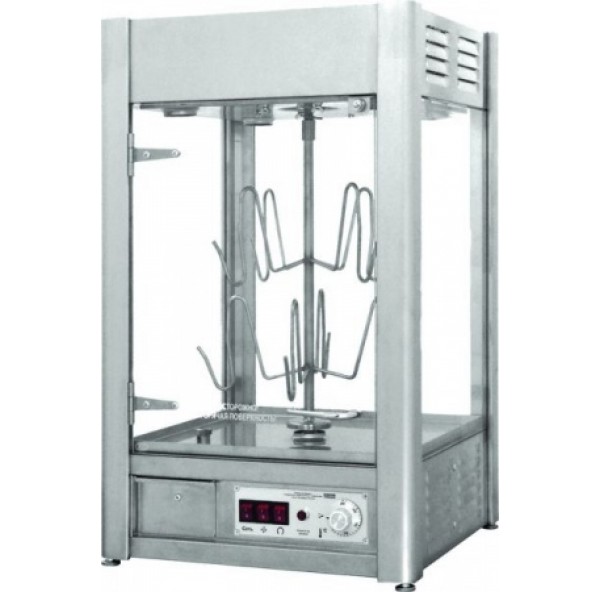 Вертикальный вертел позволяют тушкам не травмироваться в процессе жарки и равномерно обжариваться со всех сторон при температуре до +250 °С.