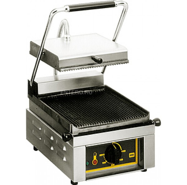 Прижимной гриль Roller Grill Savoye R предназначен для жарки мяса, птицы, рыбы, овощей, а также для приготовления стейков, гамбургеров и горячих сэндвичей на предприятиях общественного питания и торговли. Рифленая поверхность создает аппетитную хрустящую корочку. Модель оснащена поддоном для сбора соков и лишнего жира. Корпус выполнен из нержавеющей стали, ручки - из термостойкого материала.