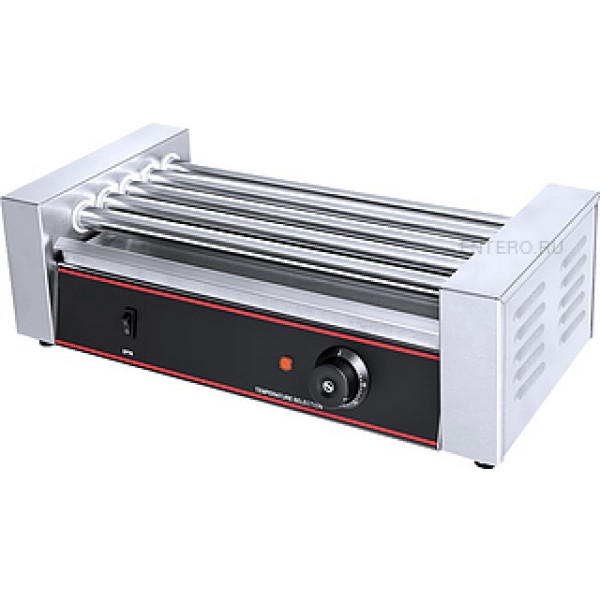 Роликовый гриль VIATTO RG-5H предназначен для обжаривания сосисок, сарделек, колбасок, а также мясных и рыбных батончиков цилиндрической формы на предприятиях общественного питания и торговли. Модель оснащена терморегулятором и кнопкой включения / выключения.