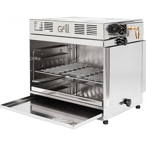Газовый гриль WeGrill In&Out предназначен для приготовления различных блюд путем обжигания (грилливания), запекания, карамелизации, гратинирования, а также с использованием технологии Sous Vide на предприятиях общественного питания и торговли. Поверхность мяса и рыбы, обработанной таким образом, мгновенно «запечатывается»: на ней появляется нежная корочка, а весь сок и аромат остаются внутри. Модель оснащена 3 инфракрасными газовыми горелками и 2 поддонами для жира. Корпус изготовлен из нержавеющей стали AISI 304.