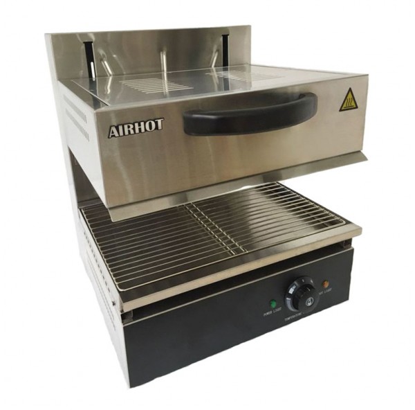 Гриль Salamander Airhot SGE-600 предназначен для обжаривания стейков и сосисок, приготовления сэндвичей, полуфабрикатов, подогрева булочек, гамбургеров, хот-догов и поддержания готовых блюд в разогретом состоянии на предприятиях общественного питания и торговли. Модель оснащена 2 зонами нагрева и съемным поддоном для сбора жира и крошек. Корпус выполнен из нержавеющей стали.