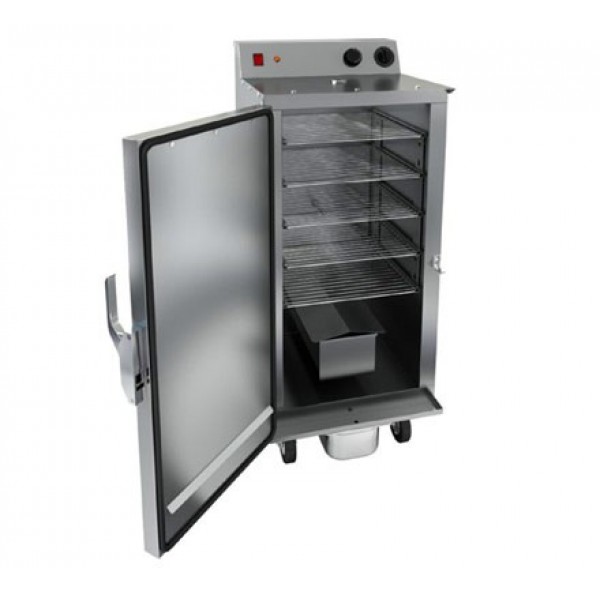 Печь-коптильня ТТМ SMAK (корпус полностью из нержавеющей стали) на 4 колесах, с 5 решетками размером 356х356мм. Решетки устанавливаются на расстоянии 127 мм. друг от друга по высоте.