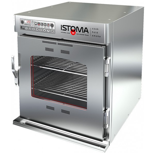 Печь низкотемпературного приготовления с функцией копчения ISTOMA EM предназначена для деликатного приготовления, хранения и копчения продуктов. Система нагрева 3D Surround Heat обеспечивает равномерное распределение тепла и поддерживает в камере одинаковую температуру вокруг продукта без принудительной конвекции воздушного потока. Печь имеет электронное управление с цифровым дисплеем и датчик-щуп. Режимы приготовления, хранения или копчения программируются с помощью 8 кнопок меню и сохраняются в памяти. Сохраняются следующие параметры: температура приготовления до 140С и хранения до 95С; время приготовления до 24 часов, время копчения до 1,5 часов, температура щупа до 95С.