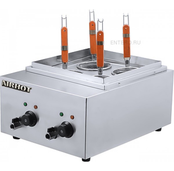 Макароноварка Airhot PC-4 используется на предприятиях общественного питания и торговли для варки всех видов макаронных изделий. Модель оснащена рабочим и аварийным термостатами и 2 независимыми ваннами с помощью которых можно варить блюда с разными приправами одновременно. Корпус и ванны выполнены из нержавеющей стали.