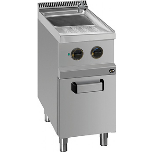 Макароноварка Apach APPE-47P 700-й серии используется на предприятиях общественного питания и торговли для приготовления спагетти, пасты и прочих изделий из теста. Модель оснащена закрытым шкафом с распашной дверцей и электромеханической панелью управления с терморегулятором, таймером и световым индикатором. Корпус, рабочая поверхность, панель управления и вытяжная решетка выполнены из нержавеющей стали AISI 304, дверца, боковые и задние панели - из нержавеющей стали AISI 430, ванна - из нержавеющей стали AISI 316, нагревательные элементы - из нержавеющей стали.