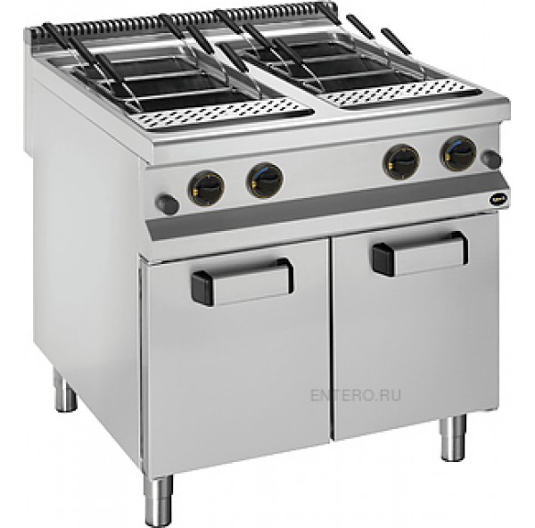 Макароноварка Apach APPG-89P 900-й серии используется на предприятиях общественного питания и торговли для отваривания спагетти, пасты и прочих изделий из теста. Модель оснащена закрытым шкафом с 2 распашными дверцами, электромеханической панелью управления с 2 терморегуляторами и таймерами и горелками с пьезоэлектрическим поджигом и системой стабилизации пламени. Корпус, рабочая поверхность, панель управления и вытяжная решетка выполнены из нержавеющей стали AISI 304, дверцы, боковые и задние панели - из нержавеющей стали AISI 430, ванна - из нержавеющей стали AISI 316.