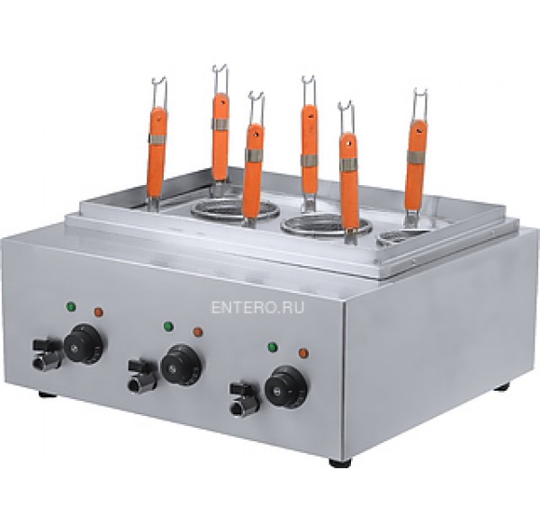 Макароноварка Enigma IEN-6A используется на предприятиях общественного питания и торговли для отваривания всех видов макаронных изделий, гарниров из круп, пельменей и вареников, яиц, морепродуктов и т.д. Модель оснащена 6 цилиндрическими корзинами и 3 рабочими зонами.