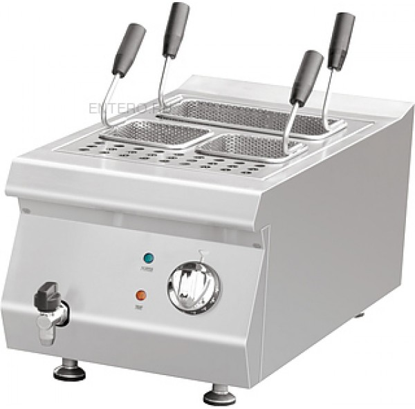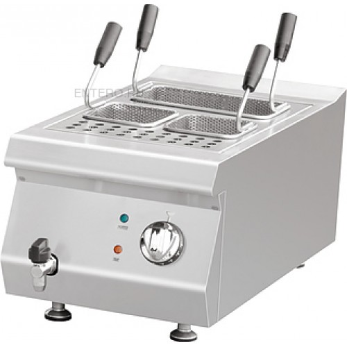 Макароноварка Kocateq 0M0CP1E класса Medium-Duty используется на предприятиях общественного питания и торговли для отваривания и размораживания кукурузы, фрикаделек, макаронных изделий, пельменей, вареников, овощей, фруктов и прочих продуктов. Модель оснащена механическим термостатом для регулировки температуры и защитным термостатом. Ванна выполнена из специальной стали толщиной 1,5 мм, декоративные ручки с накладками - из нержавеющей стали, поверхности, соприкасающиеся с продуктами, выполнены из нержавеющей стали AISI 304 толщиной 1 мм, дно и задняя стенка - из нержавеющей стали AISI 201 толщиной 1 мм.