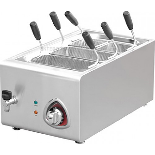 Макароноварка Kocateq 4CP класса Medium-Duty используется на предприятиях общественного питания и торговли для отваривания и размораживания кукурузы, фрикаделек, макаронных изделий, пельменей, вареников, овощей, фруктов и прочих продуктов. Модель оснащена механическим термостатом для регулировки температуры и защитным термостатом. Ванна выполнена из специальной стали толщиной 1,5 мм, декоративные ручки с накладками - из нержавеющей стали, поверхности, соприкасающиеся с продуктами, выполнены из нержавеющей стали AISI 304 толщиной 1 мм, дно и задняя стенка - из нержавеющей стали AISI 201 толщиной 1 мм.