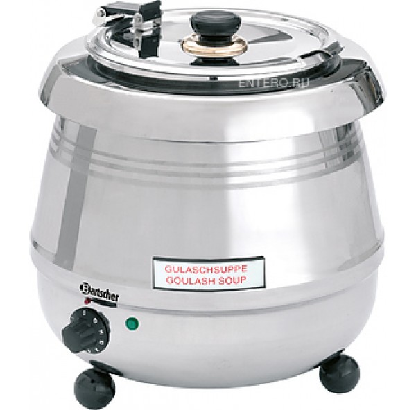 Мармит Bartscher De Luxe предназначен для поддержания в горячем состоянии первых блюд на предприятиях общественного питания и торговли. Модель оснащена термостойкими ручками и отверстием для ложки. Корпус, внутренняя съёмная кастрюля и съемная откидная крышка выполнены из нержавеющей стали.