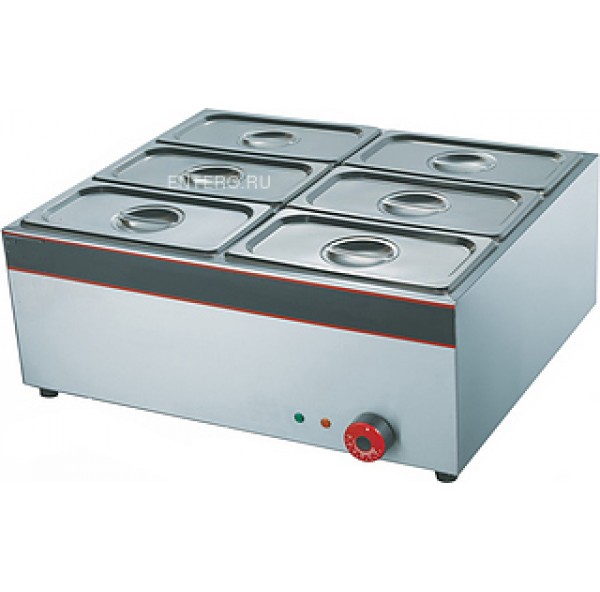 Мармит Foodatlas EH-6V предназначен для подогрева и поддержания в теплом состоянии первых и вторых блюд, различных соусов и гарниров на предприятиях общественного питания и торговли. Модель оснащена терморегулятором. Корпус выполнен из нержавеющей стали 430, гастроемкость - из нержавеющей стали 201.