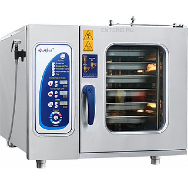 Пароконвектомат Abat ПКА 6-1/1 ПМФ предназначен для обжаривания, приготовления на пару, бланширования, запекания и других видов тепловой обработки продуктов на предприятиях общественного питания и торговли. Оборудование заменяет сразу несколько видов приборов: плиту, конвекционную печь, жарочный шкаф, духовку, опрокидывающуюся сковороду, пищеварочный котел, фритюрницу и др. Приготовленные в пароконвектомате блюда сохраняют все полезные вещества. Модель оснащена подсветкой, легкосъемным жировым фильтром, душем для мойки, дверью с двойным остеклением с фиксацией в открытом положении и возможностью жесткого крепления к полу.